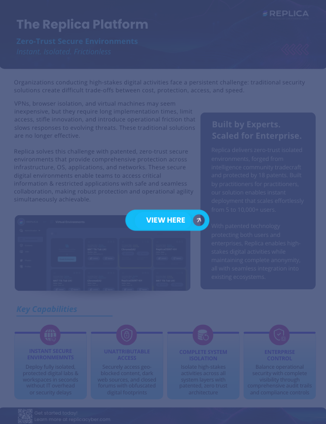 Moving beyond traditional zero-trust networking, advanced institutions are implementing zero-trust isolation—comprehensive separation of high-risk activities that maintains productivity while eliminating lateral movement risks. This enables secure access to any digital environment, from dark web intelligence gathering to M&A tech testing, without compromising institutional security.